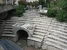 Le stade romain[9] est situé entre Sahat Tepe et les Trois Monts, sous la place moderne et centrale de Djoumaïa. Il a été construit sur le modèle du stade de Delphes et pouvait accueillir 30 000 spectateurs[8]. Seule une petite portion de 13 étages de gradins de la sphendonè a été dégagée en bordure de la place. Tout le reste du stade est encore enterré sous les rues et les immeubles alentour.