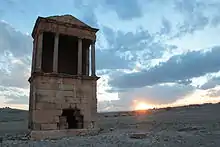 Les mausolées les mieux conservés, au nombre de trois, diffèrent par la forme : un mausolée carré reposant sur un soubassement de trois degrés et entouré de pilastres cannelés ; un mausolée tétrastyle en excellent état, reposant sur un soubassement rectangulaire de quatre mètres sur cinq et semblable à la cella d'un temple précédée de quatre colonnes corinthiennes, le tout surmonté par un entablement simple composé d'une architrave et d'un fronton ; enfin un mausolée hexagonal reposant sur un soubassement de trois degrés et constitué de deux étages terminés chacun par une corniche.