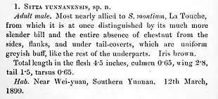 - (en) Référence Catalogue of Life : Sitta yunnanensis Ogilvie-Grant, 1900 (consulté le )