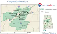 Le 6e district congressionnel d'Alabama est un district du Congrès des États-Unis en Alabama qui englobe les parties les plus riches de Birmingham, de presque tout le Comté de Jefferson à l'extérieur de Birmingham, de la majeure partie du Comté de Blount et de l'intégralité des Comtés de Bibb, Chilton, Coosa et Shelby.