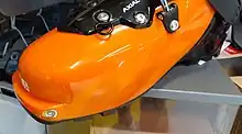 - les fixations à inserts, dites low tech, allégées, dont le principe consiste en deux picots s’insérant sur les côtés avant de chaussures conçues à cet effet, dites chaussures à inserts. Les fixations à inserts « dernière génération » sont un compromis qui reprend l'idée des talonnières alpines et des butées low tech. Elles garantissent la sécurité des premières et la légèreté des secondes[46]. Ainsi certains modèles hybrides, dits shift, permettent-ils la pratique du ski de piste, du freeride ou de la randonnée et offrent la possibilité de passer facilement du mode ski de randonnée (fixations à inserts) au mode ski de descente (fixations avec butée et talonnière) ;