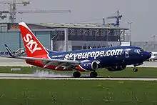 En , à la suite de ses difficultés financières et à sa restructuration, SkyEurope s'est fait saisir par l'Aéroports de Paris (ADP) un Boeing 737 de 130 à 150 places qui effectuait la rotation Paris-Prague. Cette saisie a eu lieu en raison 'd'importants retards de paiements depuis plusieurs mois' pour les services fournis par ADP, qui avaient fait l'objet de 'beaucoup de relances et de mises en demeure qui sont restées sans effet'[8]. .