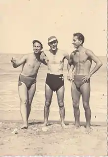 C'est pourquoi, dès le début des années 1960, les hommes homosexuels ont connoté érotiquement le slip de bain, recherchant sans cesse des modèles plus petits, plus étroits, plus échancrés, aux couleurs plus vives, afin de créer un attrait érotique et une prise de conscience collective de l'entrejambe masculine[26]. Dans la foulée, les fabricants de slips de bain ont commencé à produire des modèles destinés spécifiquement au public gay[27].