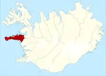 le comté en rouge sur la carte de l'Islande