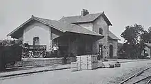 - Image de la remise à locomotives à Cusset, occupée par une voiture à voyageurs.