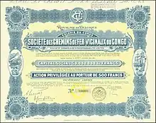 Action de la Société des Chemins de fer Vicinaux du Congo en date du 15 janvier 1932