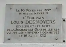 La Société des gens de lettres (SGDL)[1] est une association française de promotion du droit et de défense des intérêts des auteurs. Elle a été fondée à Paris le , sur une idée de Louis Desnoyers, soutenue par Honoré de Balzac et un comité d'écrivains. C'est une association privée reconnue comme établissement d'utilité publique par décret en date du .