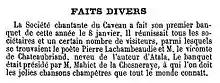 - Article Banquet du Caveau dans La Muse gauloise. Journal de la chanson par tous et pour tous, numéro 10, 15 juillet 1863.