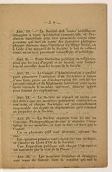 Dans les années 1860 et 1870, les sociétés visent à rendre les inventions et les progrès techniques de la photographie à travers des publications, ou par l'organisation de concours. Elles regroupent essentiellement des techniciens et des inventeurs[6].