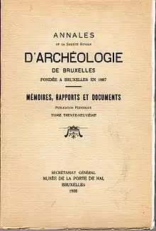 La Société royale d'archéologie de Bruxelles (SRAB), est une société savante, citoyenne et indépendante; la Société d'Archéologie de Bruxelles a été fondée à Bruxelles le 16 juin 1887. En 1905, elle était sous le patronage du Roi Léopold II et la Présidence d'honneur à Monseigneur le comte de Flandre. Son secrétariat général était situé rue Ravenstein 11 en l'Hôtel Ravenstein de Bruxelles. L'imprimeur des statuts de 1905 était Théophile Dewarichet, rue de la Montagne 52 à Bruxelles.