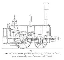 En plus des deux premières envisagées dès l’origine, la compagnie achète, pour un montant total de 80 000 F, trois locomotives supplémentaires[49]. Les locomotives sont de type Planet, déjà ancien, et construites par Fenton, Murray & Jackson constructeurs à Leeds. Les deux premières sont livrées en , les trois autres en . Elles portent le nom de « Notre-Dame-des-Tables » (patronne de Montpellier), « L’Hérault », « La Montpelliérenne », « La Cettoise » et « La Rosine ». Elles pèsent 8 tonnes et sont d’une puissance de 20 ch. Elles sont conduites par un mécanicien anglais qui forme des mécaniciens français[50].