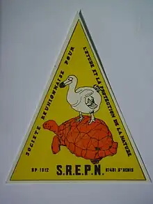 - Du n° 1 au n° 23 la vignette de couverture d'Info-Nature représentant un Dodo (oiseau) ou Dronte de Maurice perché sur une tortue fut conservée (PHOTO). Cette vignette symbolisait alors la SREPEN y compris dans ses réalisations publicitaires (PHOTO). Elle manquait cependant de vérité scientifique.