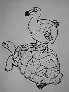 Un Dodo (ou Dronte) perché sur une tortue terrestre. - Le premier la SREPEN procéda à une ré-édition groupée de ces 4 fascicules sous la forme d'une "revue scientifique" de format 15 x 23 qui allait perdurer jusqu'au n° 10. Les numéros 5 à 9 furent réalisés par Paul Nougier et Yves Gomy et le n° 10 par Yves Gomy.