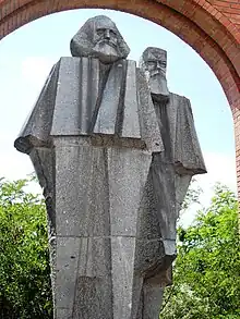 La figure du scientifique Marx est définitivement consacrée dans la culture socialiste par l'épitaphe prononcée par Engels le pour les funérailles de son ami :