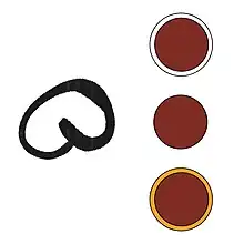 Il représente le disque solaire souvent avec un point en son centre qui, pour Jean Capart renvoie à un « vieux mythe égyptien suivant lequel le dieu du ciel (Hormerty) a deux yeux, le soleil et la lune ; le soleil est la pupille de l'œil qui fait le jour. »[1]. Il est parfois entouré d'un halo blanc ou plus rarement jaune. Il est translitéré rˁ, hrw ou sw < zw.