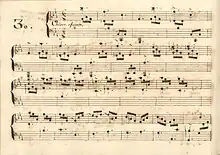 La sonate en fa mineur, K. 387, notée d'un inhabituel Veloce è fugato, est en paire avec la sonate précédente de même tonalité. Cette sonate, battue à ![]()