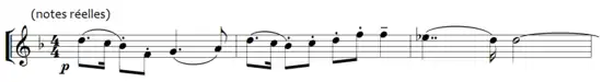 , pour son agilité et sa souplesse à jouer les batteries du mouvement lent. Le compositeur lui confie le premier thème, « plein d'allant et d'une gaîté un peu naïve, rappelant la veine populaire[6] », qui sera repris dans le dernier mouvement[2] :