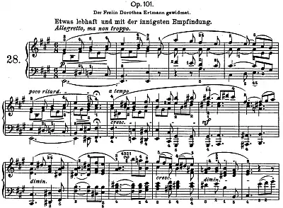 - (en) Cet article est partiellement ou en totalité issu de l’article de Wikipédia en anglais intitulé « Piano Sonata No. 28 (Beethoven) » (voir la liste des auteurs).