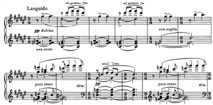 | 2 | ![]() Mes. 13-24. Thème Languido. Toutes les harmonies tournent autour du fa dièse. |