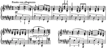 | Exposition | Premier thème | ![]() Mm. 47-53 and 68-69. Thème Presto con allegrezza. |