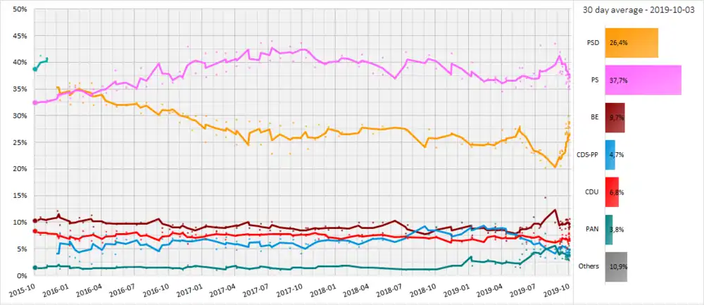 Cette page donne les sondages sur les Élections législatives portugaises du 6 octobre 2019. Tous les sondages de cette page ont été effectués entre les élections de 2015 et les suivantes.