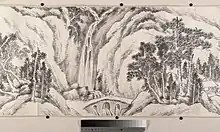 Par le moyen des « rides »[n 14], le pinceau suggère de relief vivant des choses[n 15]; mais comme les formes des montagnes peuvent affecter mille aspects variés, il s'ensuit que cette expression de leur relief ne peut se réduire à une seule formule. Cependant les esprits vulgaires s'attachent seulement à l'aspect théorique des « rides » et perdent de vue les reliefs naturels qu'elles ont fonction de représenter. Si l'on se borne à tracer les rides à partir d'un caillou ou d'une motte de terre[n 16], le résultat ne fournit qu'un seul aspect restreint des rides, et non les rides véritables d'un paysage donné, considéré dans son entité concrète. Ces divers types de rides doivent se former à partir des diverses structures et du relief naturel des montagnes: il y a adaption entre telle montagne et telle ride, car la ride procède de la montagne[n 17],[7].