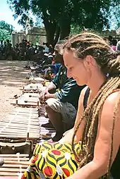 En 2017, l'ancien balatigui, El Hadji Sékou Kouyaté (1932 - 2022), joue du Sosso Bala lors d'une cérémonie solennelle. | |