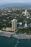 Sotchi (en russe : Сочи ; en adyguéen : Шәача, Cheuatcha ; en géorgien : სოჭი) est une ville et une station balnéaire côtière de la mer Noire, située au pied des montagnes Caucase, dans le kraï de Krasnodar, en Russie. Elle bénéficie d'un climat subtropical humide (Cfa dans la classification de Koppen) permettant notamment la culture des agrumes et du théier[1] et rend la ville particulièrement attractive sur le plan touristique. La région a autrefois appartenu aux territoires de la Circassie. La ville est fondée en 1838, avec l'implantation d'un fort russe.