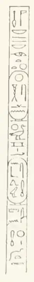 Dessin d'un fragment de stèle portant le nom de roi, provenant de Gebelein[1]. | |
