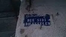 Plaque métallique indiquant la rue Sidi Abdessalem, siège du souk du même nom.
