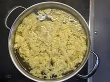 Le potage aux œufs pilés est une pate d'œufs, de lait, de farine, de beurre et de bouillon qu'on passe dans le bouillon et qu'on y fait cuire sans ébullition[27].
