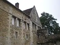 L'aile gauche primitive a disparu. Cette partie date des débuts de l'Empire. L'aile droite, réservée aux bureaux administratifs, repose une cave à quatre travées, avec doubleaux et croisées d'ogives. L'ancien escalier conduisant au cloître était dirigé en sens opposé à la descente actuelle. La cave contenait un puits. Contre le mur sud-ouest des bâtiments actuels s'étendait le cloître. On retrouve dans la cour voisine, sur trois côtés, des vestiges de corbeaux qui indiquent la hauteur de sa toiture. À l'angle de la façade est, tournée vers les jardins, on peut admirer une tourelle, remarquable par la justesse de ses proportions. La façade et la tourelle sont inscrites à l'inventaire des monuments historiques depuis le [1]. Trois lucarnes éclairent les combles (façade est). Les façades à pignons ont gardé leurs chaperons, terminés par un couronnement décoré d'une boule. À l'aile ouest se trouvaient les écuries, la boucherie, le fournil, les pressoirs et les cuves. Les greniers de cette aile servaient à entreposer le blé et autres céréales. Du côté cour et jardin étaient les serres, melonnières et bâtiments annexes. Une maison, située au no 19 de la rue de Paris (ancienne étude de Me Fraissaint, notaire), fait partie des anciennes constructions du couvent des Trinitaires[a 7].