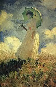 Monet utilise plusieurs techniques pour créer une atmosphère bucolique. Le premier plan et l’enfant sont traités sommairement pour que l’attention soit portée principalement sur le personnage central, dont la tenue et les traits ne sont pourtant que suggérés, l'ensemble baignant dans une atmosphère onirique[3]. Le dégradé de couleurs renforce l’effet de perspective offert par les arbres. L’impression d'espace est renforcé par les peupliers débordant le cadre. Il reprendra cette idée dans la série qu’il entamera quatre ans plus tard[3]. Le peintre prend soin de représenter une fleur rouge que Suzanne Hoschedé a déjà portée pour un autre tableau réalisé l'année précédente[4].