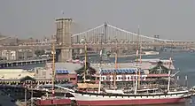 De grands voiliers sont amarrés le long du port, sur la jetée no 17, parmi lesquels le Flying P-Liner Peking, ainsi que des bateaux-musées. C'est le South Street Seaport Museum de New York, ouvert en 1967 et fondé par Peter et Norma Stanford. De la jetée, on a une excellente vue sur le pont de Brooklyn et sur Brooklyn Heights.