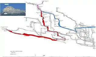- moyens de communication[27] : Système téléphonique filaire (« Spéléophone »)[28] et système de transmission par le sol (postes analogiques « Nicola » puis numériques[29] « Pimprenelle ») ;