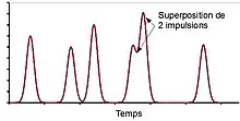 Dans le cas d'une détection qui trie les impulsions en fonction de leur amplitude, la superposition de deux impulsions crée un artefact de mesure : la grosse impulsion sera interprétée comme provenant d'un photon X dont l'énergie est la somme des énergies de chacun des 2 photons X ayant généré les impulsions. Ce problème d'empilement est partiellement résolu en mettant en place une chaine de mesures rapide qui détecte l'évènement sans discriminer l'énergie. Il est alors possible de rejeter les impulsions produites par plusieurs évènements. Bien entendu, cette réjection n'est pas possible lorsque les deux évènements sont trop rapprochés pour pouvoir être distingués par cette chaine de mesure rapide[30].