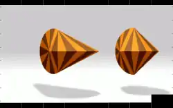 Le sphéricône est un solide formé de quatre demi-cônes se raccordant continûment. Sa surface est alors continument développable et il possède deux arêtes en demi-cercles, et quatre sommets formant un carré.