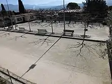 La partie se déroule, sur un terrain délimité. Celui-ci doit mesurer 27,50 m de long et de 2,5 à 4 m de large. Il est divisé en trois zones principales : au milieu, une aire libre de 12,50 m de long et à chaque extrémité deux autres espaces mesurant chacun 7,50 m de long. Ces deux zones (l'une de jeu, l'autre où le joueur peut lancer sa boule) sont compartimentées de façon identique : à l'intérieur du cadre, une ligne située à 0,50 m du bord délimite une partie neutre dans laquelle les boules et le but sont considérés comme perdus. Une deuxième ligne, située à 2 m de la première, est appelée raie de but ; elle indique la distance maximale à laquelle le but peut être lancé. La troisième ligne, ou raie de pied, tracée à 5 m de la précédente (à 7,50 m du bord du cadre) limite la zone dans laquelle le joueur peut évoluer pour lancer sa boule. Lorsque le but est jeté, celui-ci doit s'arrêter entre la raie de but et la raie de pied, c'est-à-dire qu'il se trouve toujours à une distance minimale de 12,50 m du joueur.
