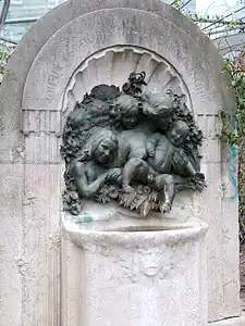 - Fontaine en pierre et bronze dite des Innocents d'Émile Derré, de 1906 : une jeune mère soutient son enfant tandis que derrière eux des fillettes et des gamins s'éjouissent. Le pénis du gros bébé, à l'image du Manneken-Pis, émet un jet d'eau dans la vasque. Les personnages en bronze reflètent une image idéaliste du bonheur, renforcée par la maxime rabelaisienne gravée « Mieux vaut de ris que de larmes escrire »[1].