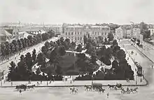 Le square, avec la mairie du 3e arrondissement au fond. | |||