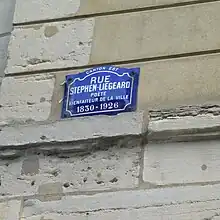 Son nom a été donné à une rue située en face de sa maison natale à Dijon ; à une rue de Thionville ; à des avenues de Cannes, Hyères et Nice ; à un IUFM de Nice situé avenue Stéphen-Liégeard, et au lycée de Brochon. L'avenue Stéphen-Liégeard de Cannes longe la villa des Violettes, où Stéphen Liégeard fit de nombreux séjours.