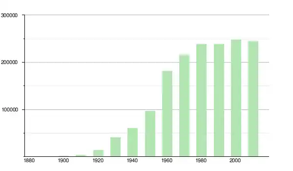 | 1950 | 96 738 | ▲ +59,08 % | |