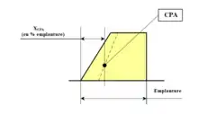 Pour des ailerons trapézoïdaux (le rectangle, le carré, les parallélogrammes et les triangles sont des trapèzes particuliers) le CPA est toujours situé sur la ligne des 25 % des cordes. D'autre part, il est situé, en envergure[n 27] à la même distance que le barycentre de la surface de l'aileron[n 28].