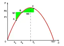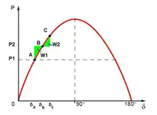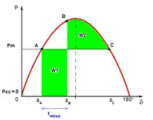 On appelle cette condition le « critère d'égalité des aires »[9]. En fait le rotor oscille autour du point d'équilibre[6].