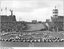 Un an plus tard, les architectes aménagent le stade pour l'accueil du 3e festival mondial de la jeunesse et des étudiants en utilisant une partie des ruines du Château de Berlin. Lors de l'insurrection de juin 1953, le stade est considéré comme un des symboles du gouvernement et les manifestants endommagent ou détruisent le lettrage et emblèmes du stade ainsi que les bancs, les murs et les vitres[3].