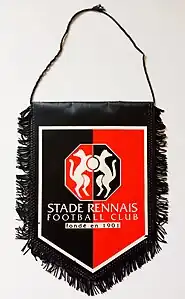 Outre la présence répétée d'hermines sur son blason, le Stade rennais FC multiplie dans son histoire les références à la culture et aux symboles de la Bretagne. Dans les années 1960 et 1970, il est identifié comme le club populaire de Bretagne, chaque match disputé à domicile voyant déferler des cars de supporters venus de toute la région[122]. Des bagadoù sont ainsi parfois présents dans l'enceinte du stade[123], tandis que des Gwenn ha du font leur apparition dans les tribunes, notamment à l'occasion des deux victoires du club en Coupe de France[122], mais aussi le , le groupe de supporters du Roazhon Celtic Kop en déployant un drapeau, grand de 270 m2, à l'occasion d'un match face au Paris Saint-Germain[124].