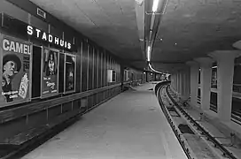 La station Stadhuis (en français hôtel de ville) est mise en service le , lors de l'ouverture à l'exploitation de la première section de ligne du métro, de Rotterdam-Centrale à Zuidplein[1]. Elle doit son nom à l'Hôtel de ville de Rotterdam situé à proximité.