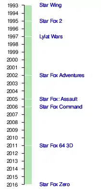Star Fox 64 3D (スターフォックス64 3D, Sutā Fokkusu Rokujūyon Surīdī) est un remake de Lylat Wars sorti en 2011 sur Nintendo 3DS, deuxième titre de la série sur console portable[14] ; de ce fait, il n'est pas pris en compte comme un épisode nouveau dans la chronologie ci-dessus.