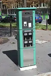 À la fin du XIXe siècle, on parle de colonne de charge pour automobile électrique, avec un format proche des boîtes aux lettres. Pour recharger ses accumulateurs, l'utilisateur doit mettre un jeton dans le compteur, fermer les coupe-circuits intérieurs, l'interrupteur bipolaire et choisir avec le commutateur du rhéostat l'intensité de charge (de 25 à 80 A) à fournir à la batterie[2].