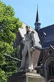 ![]() | Statue en pied, sur un socle portant l'inscription « Il créa ce jardin et en fit donation pour notre repos et notre joie »[16]. | René Cliquet | Jardin du Roi à Ixelles[17] | 1969[17] | En juin 2020, la statue a été taguée pour la première fois et la revendication « Abolissons tous les monuments racistes » a été écrite en anglais sur le piédestal, par contre son nez cassé ne résulte pas d'un acte de vandalisme, mais de l'usure du temps[18]. |
